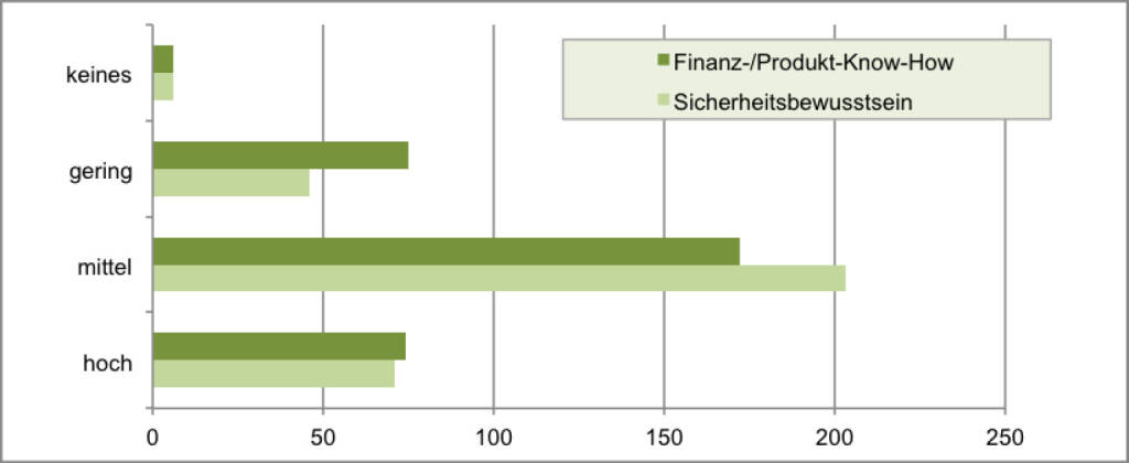 So sehen die Berater ihren typischen Zertifikatekunden: durchschnittliches Sicherheitsbewusstsein steht im Vordergrund, viele schätzen auch das Finanz-Know-how ihrer Kunden als durchschnittlich ein. Von der Struktur der Produkte ist auch erkenntlich, dass lediglich 0,6 Prozent des investierten Volumens in Hebelprodukte veranlagt werden, der Rest in Zertifikate mit längerer Laufzeit und geringerem bis abgesichertem Risiko.