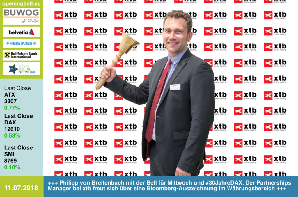 11.7. : Philipp von Breitenbach läutet die Opening Bell für Mittwoch und #30JahreDAX. Der Partnerships Manager bei xtb freut sich über eine Bloomberg-Auszeichnung im Währungsbereich. Mehr dazu heute im http://www.boerse-social.com/gabb http://www.xtb.de https://www.facebook.com/groups/GeldanlageNetwork / #goboersewien
