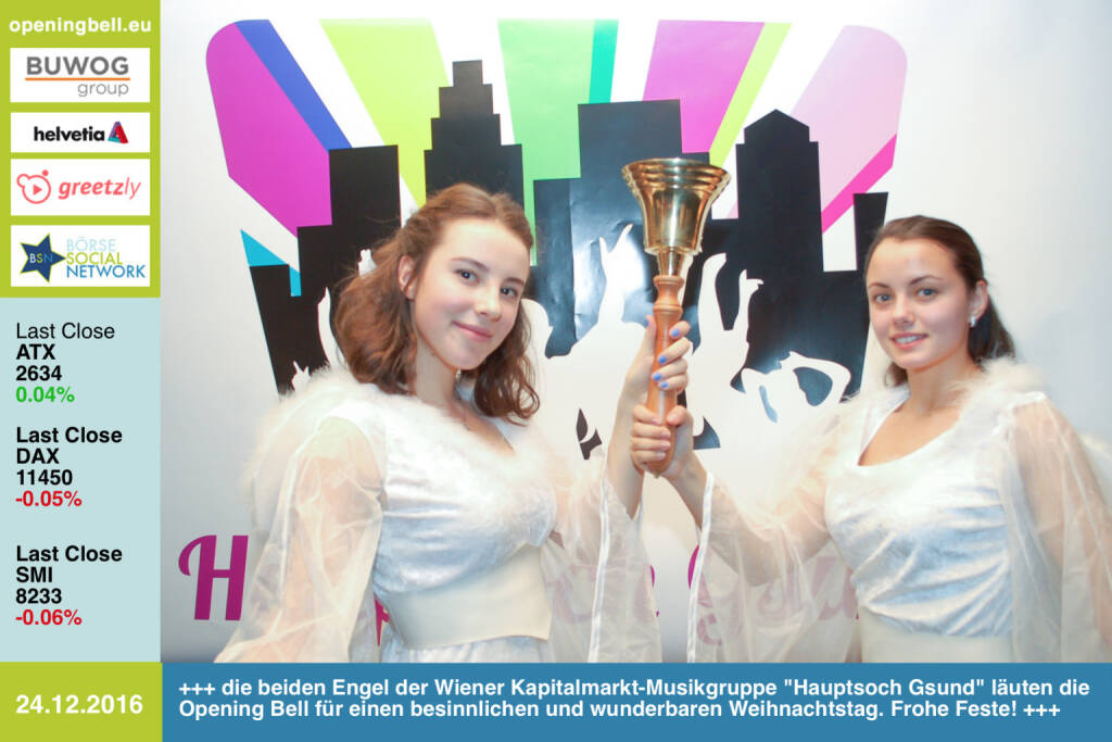 24.12.: Die beiden Engel der Wiener Kapitalmarkt-Musikgruppe "Hauptsoch Gsund" läuten die Opening Bell für einen besinnlichen und wunderbaren Weihnachtstag. Frohe Feste! https://www.facebook.com/events/540562056143709/ https://www.facebook.com/groups/GeldanlageNetwork/