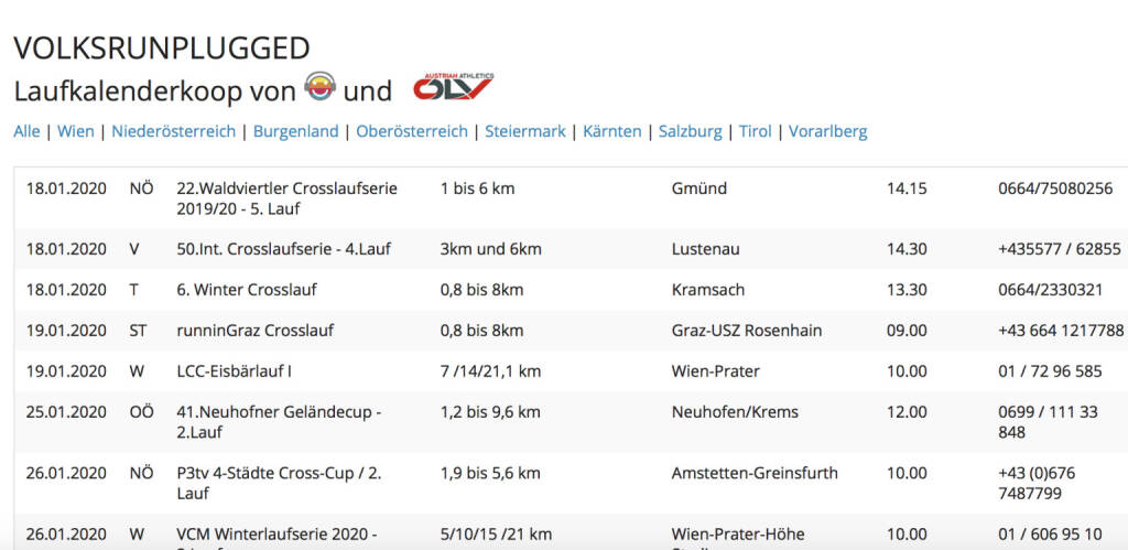 Volksrunplugged, unser Laufkalender in Kooperation mit dem ÖLV, hat wieder eine Fülle neuer Einträge, siehe https://runplugged.com/volksrunplugged .