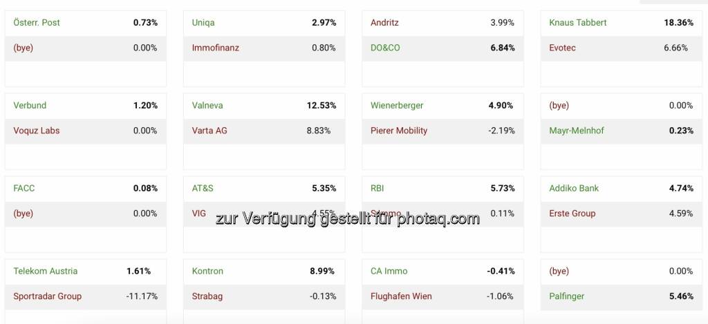 13. Aktienturnier by IRW-Press: Frelich fliessen auch bei den vier Gesetzten (die besten der bisherigen 12 Turniere) die Veränderungen ein, gegen ein "Bye" (Freilos) kann man aber nicht verliereren. Insofern werden Post, Palfinger, FACC und Mayr-Melnhof fix in die 2. Runde aufsteigen. Interessant wird die Performance von Pierer Mobility, denn auch als Titelverteidiger kann man den Wanderpokal für immer gewinnen.