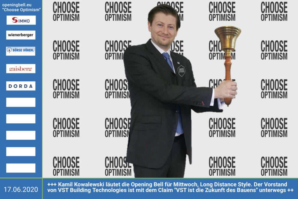 17.6.: Kamil Kowalewskiläutet die Opening Bell für Mittwoch, Long Distance Style (vorher/nachher unter https://photaq.com//page/index/3781 ). Der Vorstand von VST Building Technologies ist mit dem Claim "VST ist die Zukunft des Bauens" unterwegs https://vstbuildingtechnologies.com mehr Infos unter http://www.openingbell.eu mehr Choose Optimism: https://boerse-social.com/category/choose_optimism https://www.facebook.com/chooseoptimism/