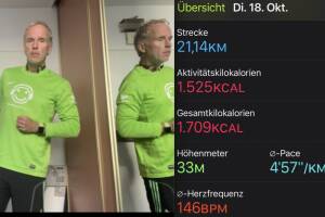 Es hat Tradition, dass ich mich bei treuen grösseren Geschäftspartnern, die ein Committment für next Season abgeben, per Halbmarathon symbolisch bedanke. Das sind für mich schöne Läufe. Heuer ist es ganz besonders, da es - nachdem mich im Winter eine Covid-Erkrankung mit schwererem Verlauf für Monate aus jeder auch nur im Versuch ambitionierten Sporttätigkeit genommen hat - anstrengender ist. Der 3. Partner-HM (nach Palfinger und Wienerberger)warfür wikifolio und ist mit Pace 4:57 bei super Wetter sehr gut gegangen oder besser gelaufen. Nach nur 2 Tagen Pause nach HM2 war ich kaum müde, Beine ein bissl schwer. Aktivität: Lauf Dauer: 01:44:12 Distanz: 21 100 Pace: 04:56 km h: 12.16 Schuhe: On App: keine Uhr: Apple Watc... » Weiterlesen