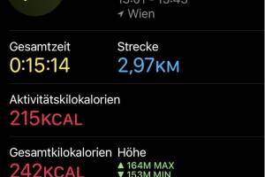 Nach drei Kilometern ist gestern Starkregen gekommen, ich musste mich unterstellen und der Lauf war Geschichte, aber das macht natürlich rein gar nichts. Aktivität: Lauf Dauer: 00:15:14 Distanz: 2 970 Pace: 05:07 km h: 11.73 Schuhe: On App: keine Uhr: Apple Watch Runkit rechnet: Christian ist im August bisher 57,070 km gelaufen, im Schnitt täglich 2,853 km, ein Plus von 67,16 Prozent gegenüber dem Juli, als Christian 1,707 km Tagesschnitt hatte. Christians Top-Monat bisher: November 2020 mit 10,999 km täglich. a href=" runkit profil 5 christian_drastil" target="_blank"> >> Zum Runkit Profil von Christian Drastil Weitere Einträge bzw. selbst gratis anmelden, Aktivitäten verwalten und bloggen! » Weiterlesen