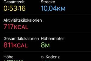 Ich möchte einfach wieder laufen, auch wenn ich immer noch nicht schmerzfrei bin, ein neuer Zugang ist, es recht langsam anzugehen. Das habe ich am Samstag gemacht und die Herzfrequenz ist mit 128 wieder recht gut gewesen. Aktivität: Lauf Dauer: 00:53:16 Distanz: 10 040 Pace: 05:18 km h: 11.32 Schuhe: On App: keine Uhr: keine Runkit rechnet: Christian ist im August bisher 17,510 km gelaufen, im Schnitt täglich 2,501 km, ein Plus von 46,53 Prozent gegenüber dem Juli, als Christian 1,707 km Tagesschnitt hatte. Christians Top-Monat bisher: November 2020 mit 10,999 km täglich. a href=" runkit profil 5 christian_drastil" target="_blank"> >> Zum Runkit Profil von Christian Drastil Weitere Einträge bzw. selbst gratis anmelden, Aktivi... » Weiterlesen