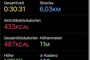 Heute sind sich zwischendurch 6 Kilometer ausgegangen, es war schon recht heiss und alle, die ich auf der kurzen Strecke getroffen haben, haben ziemlich gelitten. Aktivität: Lauf Dauer: 00:30:31 Distanz: 6 030 Pace: 05:03 km h: 11.88 Schuhe: Asics App: keine Uhr: Apple Watch Runkit rechnet: Christian ist im Juni bisher 100,680 km gelaufen, im Schnitt täglich 3,728 km, ein Minus von 29,88 Prozent gegenüber dem Mai, als Christian 5,318 km Tagesschnitt hatte. Christians Top-Monat bisher: November 2020 mit 10,999 km täglich. a href=" runkit profil 5 christian_drastil" target="_blank"> >> Zum Runkit Profil von Christian Drastil Weitere Einträge bzw. selbst gratis anmelden, Aktivitäten verwalten und bloggen! » Weiterlesen