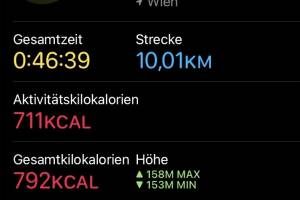 Es war der erste etwas schnellere Lauf seit Covid und vor allem die letzten 3 Kiometer waren wieder in Pace 4:20. Ich spür das alles noch recht stark, aber immerhin. Aktivität: Lauf Dauer: 00:46:39 Distanz: 10 010 Pace: 04:39 km h: 12.90 Schuhe: Saucony App: keine Uhr: Apple Watch Runkit rechnet: Christian ist im bisher ,00 km gelaufen, im Schnitt täglich , km, ein Plus von 0,00 Prozent gegenüber dem , als Christian 0,000 km Tagesschnitt hatte. Christians Top-Monat bisher: mit 0,000 km täglich. a href=" runkit profil 5 christian_drastil" target="_blank"> >> Zum Runkit Profil von Christian Drastil Weitere Einträge bzw. selbst gratis anmelden, Aktivitäten verwalten und bloggen! » Weiterlesen