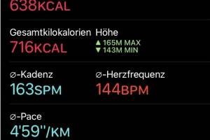 Nach meiner Covid-Erkrankung bin ich zuerst 5, dann 6, dann 7, dann 8, dann 9 Kilometer heute gelaufen, freilich mit Vorsicht, heute war wenigstens der Puls wieder unter 150. Aktivität: Lauf Dauer: 00:44:59 Distanz: 9 010 Pace: 04:59 km h: 12.04 Schuhe: Asics App: keine Uhr: Apple Watch Runkit rechnet: Christian ist im März bisher 9,010 km gelaufen, im Schnitt täglich 9,10 km, ein Plus von 441,03 Prozent gegenüber dem Februar, als Christian 1,665 km Tagesschnitt hatte. Christians Top-Monat bisher: November 2020 mit 10,999 km täglich. a href=" runkit profil 5 christian_drastil" target="_blank"> >> Zum Runkit Profil von Christian Drastil Weitere Einträge bzw. selbst gratis anmelden, Aktivitäten verwalten und bloggen! » Weiterlesen