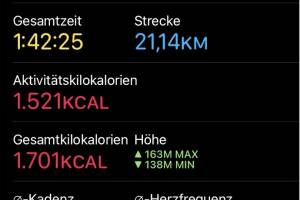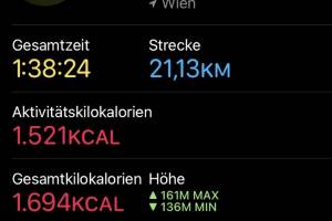 Ein schöner HM, gewidmet meinem langjährigen Partner RCB. Es ist heute Vormittag sehr gut gegangen, wieder war es Negative Splitting und mit Anstrengung könnten diese acht Minuten drin sein. Aktivität: Lauf Dauer: 01:38:24 Distanz: 21 130 Pace: 04:39 km h: 12.90 Schuhe: On App: keine Uhr: Apple Watch Runkit rechnet: Christian ist im Oktober bisher 66,530 km gelaufen, im Schnitt täglich 6,653 km, ein Minus von 2,88 Prozent gegenüber dem August, als Christian 6,850 km Tagesschnitt hatte. Christians Top-Monat bisher: November 2020 mit 10,999 km täglich. >> Zum Runkit Profil von Christian Drastil Weitere Einträge bzw. selbst gratis anmelden, Aktivitäten verwalten und bloggen! » Weiterlesen