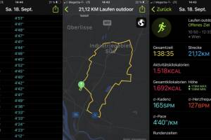 Heute wieder einen HM gelaufen, wohl den letzten vor meiner Startnummern Woche (am Dienstag Vienna Night Run und am Sonntag die Österreichischen Meisterschaften über 1500m). Ich laufe ja nur Halbmarathons, wenn ich einen Grund habe, diese einem langjährigen Partner zu widmen. Heute: Danke, VIG! Und ich muss sagen, der Cloudboom von On ist der Schuh, dem ich momentan am meisten vertraue, vor allem über die längeren Distanzen. Vielleicht laufe ich auch die 5k beim Nightrun mit dem Cloudboom. Aktivität: Lauf Dauer: 01:38:35 Distanz: 21 120 Pace: 04:40 km h: 12.86 Schuhe: On App: keine Uhr: Apple Watch Runkit rechnet: Christian ist im September bisher 168,809 km gelaufen, im Schnitt täglich 9,378 km, ein Plus von 36,91 Prozent gegenüber dem... » Weiterlesen
