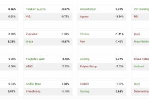 Heute im #gabb: Um 10:35 liegt der ATX TR mit +0.57 Prozent im Plus bei 6920 Punkten (Ultimo 2020: 5466). Topperformer der PIR-Group sind Palfinger mit +2.14% auf 35.85 Euro, dahinter AT&S mit +1.77% auf 37.35 Euro und Verbund mit +1.75% auf 82.775 Euro. Zum Vergleich der DAX: 15636 (+0.80%, Ultimo 2020: 13719). - Halbzeit Runde 1 im 8. Aktienturnier by IRW-Press - PIR-News: AT&S, Strabag, Valneva, S Immo, Verbund, Erste Group - Kurze zu OMV - Unser Robot sagt: Addiko Bank, Strabag, Warimpex und weitere Aktien auffällig, Herbert Juranek führt im CEO-Ranking - EU-Stolperer werden zu Sektorbewegungen an den Börsen führen - Börsegeschichte 7.7.: Extremes zu Zumtobel - Österreich-Depots: Schöne Dividende von Agrana bekommen - wikifolio Stockpicking Österreich... » Weiterlesen