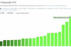Um 10:14 liegt der ATX TR mit +1.58 Prozent im Plus bei 6916 Punkten (Ultimo 2020: 5466). Topperformer der PIR-Group sind Strabag mit +2.70% auf 37.125 Euro, dahinter Erste Group mit +2.28% auf 31.645 Euro und Porr mit +1.88% auf 16.3 Euro. Zum Vergleich der DAX: 15687 (+1.00%, Ultimo 2020: 13719). So sehen die ATX TR Heftrücken nach 54 Ausgaben Börse Social Magazine au s, diesmal gab es eine kleine Konsolidierung, AT&S war Monatsbester im Juni mit +20,66 Prozent. Und die beste ATX TR-Aktie zum Halbjahr? Die Österreichische Post mit +56 Prozent. Alle 20 Members sehen wir in Grün. Wem welcher Balken gehört, sieht man unter boerse-social.com bsngine performance atx#sort_rang!ascending . Österreichische Post ( Akt. Indikation: 45,40 45,70, 1,56%) Beim ... » Weiterlesen