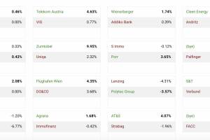 Heute im http: www.boerse-social.com gabb . Um 12:25 liegt der der ATX TR mit -0.05 Prozent im Minus bei 6284 Punkten (Ultimo 2020: 5466). Topperformer der PIR-Group sind VIG mit +1.22% auf 22.875 Euro, dahinter Rosenbauer mit +1.16% auf 52.2 Euro und Frequentis mit +0.92% auf 22 Euro. Zum Vergleich der DAX: 15218 (+0.10%, Ultimo 2020: 13719). - Geht Rene Benko mit einem SPAC an die Börse? - 7. Aktienturnier presented by IRW Press: Schlusstag Runde 1, es sieht nach einem ÖBAG-Duell aus - PIR-News: Rosenbauer, Andritz, Evotec, Immofinanz, Frequentis, Fabasoft, S Immo, Valneva - Kurze: OMV, voestalpine, SW Umwelttechnik - Unser Robot sagt: Zumtobel, AT&S, Porr und weitere Aktien auffällig - Ort des Tages: Vivatis Holding AG Headquarter - Börsegeschichte 9.4.: Extremes bei RBI - &... » Weiterlesen