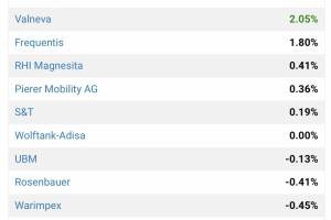 Heute im http: www.boerse-social.com gabb . Um 12:31 liegt der der ATX TR mit +0.34 Prozent im Plus bei 6272 Punkten (Ultimo 2020: 5466). Topperformer der PIR-Group sind Verbund mit +3.26% auf 62.575 Euro, dahinter AT&S mit +2.27% auf 30.425 Euro und DO&CO mit +1.80% auf 70.55 Euro. Zum Vergleich der DAX: 15008 ( -0.01%, Ultimo 2020: 13719). - Aktienturnier: Virtuell Cleen Energy, Beaconsmind, Knaus Tabbert und Valneva qualifiziert - PIR-News: Fabasoft, AT&S, FACC, Andritz, Cleen Energy, RBI - Wiener EdTech mit Börsenambitionen - Unser Robot sagt: Rosenbauer, Post, Immofnanz und weitere Aktien auffällig - Urlaub am Bauernhof - Ort des Tages:Miba AG Headquarter - Börsegeschichte 31.3.: Extremes zu Uniqa - wikifolio Stockpicking Österreich DE000LS9BHW2: +0.61% vs. last #g... » Weiterlesen