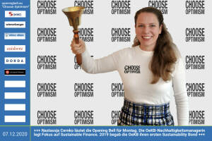 7.12.: Nastassja Cernko läutet die Opening Bell für Montag, Long Distance Style (vorher nachher unter photaq.com page index 3781 ). Die Nachhaltigkeitsmanagerin der OeKB legt einen besonderen Fokus auf Sustainable Finance. 2019 begab die OeKB ihren ersten Sustainability Bond http: www.oekb.at - mehr Choose Optimism: boerse-social.com category choose_optimism www.facebook.com chooseoptimism 4.12.: Lisa Osada läutet die Bell für Freitag. Ihr Blog "Lisas Aktien und Finanzen" aktiengram.de ist nominiert beim VBV Smeil Alps 2020, Blogs noch bis Montag 7.12. einreichen: http: smeil-award.com http: www.vbv.at - Mehr Choose Optimism: boerse-social.com category choose_optimism www.facebook.com chooseoptimism 3.12.: Hansjörg Leichsenring läutet die... » Weiterlesen
