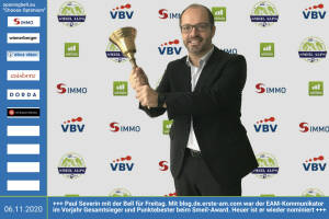 6.11.: Paul Severin läutet die Opening Bell für Freitag. Mit http: blog.de.erste-am.com war der EAM-Kommunikator im Vorjahr Gesamtsieger und Punktebester beim Finanzbloggeraward Novomatic Smeil Alps 2019. Der Award wird heuer unter VBV Smeil Alps 2020 ausgetragen und bis 7. Dezember läuft die Nominierungsphase, bereits 63 Nominees sind da, siehe http: www.smeil-award.com http: www.vbv.at Mehr Choose Optimism: boerse-social.com category choose_optimism www.facebook.com chooseoptimism 5.11.: Viktoria Schnaderbeck läutet die Opening Bell für Donnerstag. Die ÖFB-Teamkapitänin spricht am 13.11. online zum Thema "Mein Umgang mit Rückschlägen: 10 Versprechen an mich selbst". Tickets hier: www.eventbrite.at e online-vortrag-von-viktoria-schnaderbeck-... » Weiterlesen