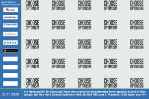 3.11.: Eine Opening Bell für Dienstag? Nach dem menschenverachtenden Terror gestern Abend in Wien bringen wir eine leere Choose Optimism-Wall, die Bell fällt zum 1. Mal nach 1260 Börsetagen, als Buwog-CEO Daniel Riedl im Oktober 2015 zum 1. Mal läutete, aus. Mehr Choose Optimism: boerse-social.com category choose_optimism www.facebook.com chooseoptimism 2.11.: Wendelin und Jonathan Chladek läuten die Bell für Montag. Die beiden werden in gewohnter Manier Nominierungen und Kommunikation rund um den VBV Smeil Alps 2020 managen. Blogs einreichen und nomnieren bis 7.12.: http: smeil-award.com . Mehr Choose Optimism: boerse-social.com category choose_optimism www.facebook.com chooseoptimism 30.10.: Günter Geyer läutet die Opening Bell für Freita... » Weiterlesen
