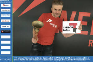 7.10.: Michael Wernbacher läutet die Opening Bell für Mittwoch. Der Chef von http: www.wemove.at ist in dieser Woche mit 50% Rabatt auf Saisonware im Esslinger Tresor, Motto "Wemove Lobau" präsent. Heute von 16 bis 20 Uhr, Details siehe www.treffpunktessling.at 2020 09 25 der_tresor_sperrt_von_7_bis_9_oktober_fur_wemove_lobau_und_neurosocks_noch_einmal_auf 6.10.: Filip Miermans läutet die Opening Bell für Dienstag. Der Lenzing-Kommunikator sieht dieser Tage eine starke Phase seiner Aktie. Zuletzt Vier Tage im Plus und 7 Prozent alleine gestern www.lenzing.com Mehr Choose Optimism: boerse-social.com category choose_optimism www.facebook.com chooseoptimism 5.10.: Susanne Hofbauer läutet die Opening Bell für Montag, Long Distance Style (vorher nac... » Weiterlesen