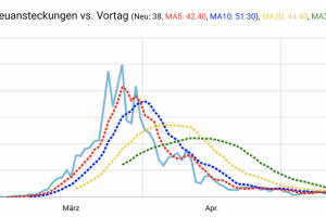 Covid Charttechnik 22.5.: Die Neuansteckungen pendeln sich auf niedrigem Niveau ein