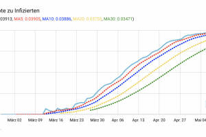 Covid Charttechnik 11.5.: Das Verhältnis Verstorbene zu Gesamtzahl in Österreich offiziell Infizierte (incl. Genese und Verstorbene) steigt seit Tagen nicht mehr, verharrt bei 3,9 Prozent About: ImBörse Social Covid 19 Monitor, siehe www.boerse-social.com covid19 , sehen wir uns täglich für Österreich gesamt und die 9 Bundesländer mehrere Charts an: Infektionen gesamt, Neuansteckungen absolut und in Prozent, aktuell Erkrankte, Verstorbene und Gesundete. Täglich aktualisiert basierend auf den 15:00-Werten von info.gesundheitsministerium.at Dazu rücken wir mit Charttechnik an: Anzahl vs. 5 Tage (rot) vs. 10 Tage (dunkelblau) vs. 20 Tage (gelb) gleitender Durchschnitt (MA, Moving Average) vs. 30 Tage (grün). Weitere Map-Anwendungen: >> Zur Finan... » Weiterlesen
