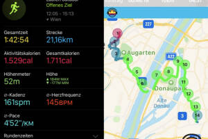 Ich schaue derzeit, dass ich meine Eltern so oft wie möglich im Garten sehe. Da bieten sich Läufe an. Heute bin ich recht zügige 13k hingelaufen (rechte Map Runplugged), dann ein Zeitl dortgeblieben und dann am Rückweg den Halbmarathon ausgelaufen locker (schwarze AppleWatch Map). Daher ist das einer in zwei Etappen und mit mehr als 3 Stunden Gesamtzeit, darunter 1:20 Stopptaste. Gesamtpace mit 4:52. Aktivität: Lauf Dauer: 01:42:54 Distanz: 21 160 Pace: 04:51 km h: 12.37 Schuhe: Asics App: Runplugged Uhr: Apple Watch Runkit rechnet: Christian ist im Mai bisher 71,080 km gelaufen, im Schnitt täglich 10,154 km, ein Plus von 14,82 Prozent gegenüber dem April, als Christian 8,844 km Tagesschnitt hatte. Christians Top-Monat bisher: Juli 2017 mi... » Weiterlesen