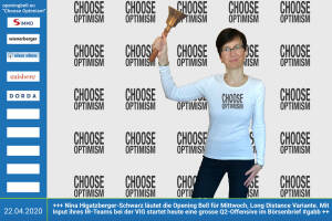 22.4.: Nina Higatzberger-Schwarz läutet die Opening Bell für Mittwoch, Long Distance Variante (vorher nachher unter photaq.com page index 3781 ). Mit Input ihres IR-Teams bei der VIG startet heute eine grosse Q2-Offensive im Börsenbrief #gabb http: www.vig.com http: www.boerse-social.com gabb mehr Infos unter http: www.openingbell.eu mehr Choose Optimism: boerse-social.com category choose_optimism www.facebook.com chooseoptimism 21.4.: Clemens Billek läutet die Opening Bell für Dienstag, Long Distance Variante (vorher nachher unter photaq.com page index 3781 ) . Der Ex-Investmentbanker und conwert-Sprecher vereinfacht und digitalisiert mit seiner drd-App den Zugang zum Arzt (siehe dazu mehr unter drd.at ) mehr Infos unter http: www.openingbel... » Weiterlesen