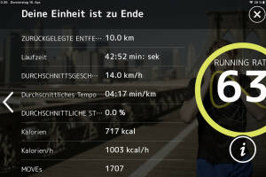 Ich wiederhole mich: Da mir Laufen in der Stadt derzeit viel zu dicht ist, lauf ich auf dem Laufband im Büro. Und da hab ich heute Mittag die 10k erstmals heuer in einer 42er bewältigt. Ich sag mal: 41er geht wohl auch noch, dann wird aber eng, da müssen ein paar Kilo runter. Aktivität: Lauf Dauer: 00:42:52 Distanz: 10 000 Pace: 04:17 km h: 14.01 Schuhe: Adidas App: Technogym MyRun Uhr: Apple Watch Runkit rechnet: Christian ist im April bisher 144,670 km gelaufen, im Schnitt täglich 9,41 km, ein Plus von 411,03 Prozent gegenüber dem März, als Christian 1,769 km Tagesschnitt hatte. Christians Top-Monat bisher: Juli 2017 mit 10,433 km täglich. >> Zum Runkit Profil von Christian Drastil Weitere Einträge bzw. selbst gratis... » Weiterlesen