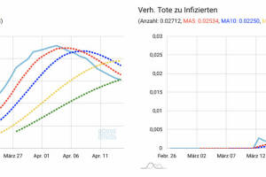 14 4. 15 Uhr: Die Zahl der Erkrankten liegt mittlerweile nur noch im 30 Tage Durchschnitt, die Zahl der Toten bezogen auf die Gesamtansteckungen steigt aber weiter About: ImBörse Social Covid 19 Monitor, siehe www.boerse-social.com covid19 , sehen wir uns täglich für Österreich gesamt und die 9 Bundesländer mehrere Charts an: Infektionen gesamt, Neuansteckungen absolut und in Prozent, aktuell Erkrankte, Verstorbene und Gesundete. Täglich aktualisiert basierend auf den 15:00-Werten von info.gesundheitsministerium.at Dazu rücken wir mit Charttechnik an: Anzahl vs. 5 Tage (rot) vs. 10 Tage (dunkelblau) vs. 20 Tage (gelb) gleitender Durchschnitt (MA, Moving Average) vs. 30 Tage (grün). Weitere Map-Anwendungen: >> Zur Finanzmap >> Zur Runmap auf run... » Weiterlesen