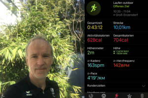 2018 war für mich ein super Jahr, ich wurde gerade 50 und konnte in diesem Jahr2 Wiener Meistertitel in der neuen AK holen. Im Jahr 2019 war ich komplett ohne Startnummer unterwegs und auch für 2020 gibt es keine grossen Ambitionen. Aber nun kommt schon langsam wieder das "Beat yesterday"-Interesse:Heute 7,5k am Laufband in 32:42, zuletzt waren es noch 33:46. Pace 4:21 ist jetzt nicht brüllend, ich bin aber auch nur die letzten 1,5k wirklich im Streng-Dich-an-Modus gewesen. Aktivität: Lauf Dauer: 00:32:42 Distanz: 7 500 Pace: 04:21 km h: 13.79 Schuhe: Adidas App: Technogym MyRun Uhr: Apple Watch Runkit rechnet: Christian ist im April bisher 82,140 km gelaufen, im Schnitt täglich 8,214 km, ein Plus von 364,24 Prozent gegenüber dem März, als Christia... » Weiterlesen