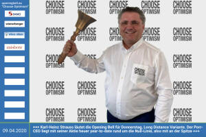 9.4.: Karl-Heinz Strauss läutet die Opening Bell für Donnerstag, Long Distance Variante (vorher nachher unter photaq.com page index 3781 ). Der Porr-CEO liegt mit seiner Aktie heuer year-to-date rund um die Null-Linie, also mit an der Spitze http: www.porr.at mehr Infos unter http: www.openingbell.eu mehr Choose Optimism: boerse-social.com category choose_optimism www.facebook.com chooseoptimism 8.4.: Paul Rettenbacher läutet die Opening Bell für Mittwoch, Long Distance Variante. In der heutigen Ausgabe des Börsenbriefs #gabb berichtet der Polytec-IR-Mann über Kiste & Co. www.polytec-group.com mehr Infos unter http: www.openingbell.eu mehr Choose Optimism: boerse-social.com category choose_optimism www.facebook.com chooseoptimism ... » Weiterlesen