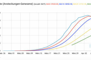 Covid Charttechnik 7.4.: Nun auch der gleitende 30-Tage-Durchschnitt dabei, das ze...