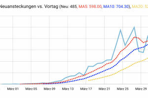 Covid Charttechnik 2.4.: Weniger Neuinfizierte in Österreich als im 20-Tage-Durchs...