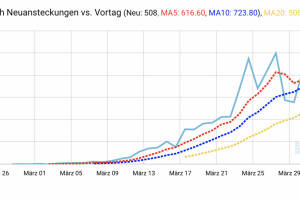Zu den Charts, bei denen wirklich jeder hofft, dass sie wieder fallen . Zum einen sind das die Arbeitslosenzahlen, zum anderen natürlich - noch viel wichtiger, so arg das klingt - die Infektionen bei Covid-19 . Wir schauen uns das ja seit ein paar Tagen für Österreich gesamt und die Bundesländer unter www.boerse-social.com covid19 an. Im Beitrag von gestern meinte ich, dass die Neuansteckungen im 20-Tage-Durchschnitt lägen, also schon weit höher gewesen sind. Zu diesem Chartbeitrag hatte ich Robert Schittler, Österreichs wohl bekanntesten Charttechniker, via Facebook um ein paar Worte gebeten. Robert antwortete: " Also, 600 ist durch, die Bid- Ask-Balance bei 800 hat im Rebound gehalten, somit klar bearishes Bild . Der 20-Tages Schnitt mag v Bedeutung sein, ... » Weiterlesen