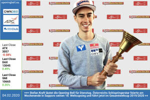 4.2.: Stefan Kraft läutet die Opening Bell für Dienstag. Österreichs Schispringerstar feierte am Wochenende in Sapporo seinen 18. Weltcupsieg und führt jetzt im Gesamtweltcup 2019 2020 http: www.oesv.at http: www.sportgeschichte.at 3.2.: Wilhelm Rasinger läutet die Opening Bell für Montag. Der IVA-Mann blickt für uns auf die 10er-Jahre an der Wiener Börse zurück, die österreichischen Anleger hätten zu wenig von den Dividenden profitiert. Mehr dazu heute Mittag im #gabb http: www.boerse-social.com gabb 31.1.: Viktoria Schnaderbeck läutet die Opening Bell für Freitag. Die ÖFB-Teamkapitänin wurde beim "Business Athlete Award" zum Rookie of the Year gewählt: Eigenes Business während aktiver... » Weiterlesen