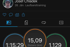 Heute erstmalig15k in 5:00 (auf dem Laufband) versucht. Die ersten 30' gingen gar nicht gut, hatte nichtmal das Gefühl, dass ich einen 10er schaffen würde. Aber die zweite halbe Stunde dann beissen und ab 1h dann eh schon wurscht. Hatte ja zuletzt draussen einen 14er (in 5:15 mit Luft), und13km in 4:59 am Band - das war dann gut für den Kopf, der letzte Kilometer dann noch mit 12,5km h, damit der Schnitt noch auf 5:00 runter geht - und fein (hart) war es! Aktivität: Lauf Dauer: 01:15:30 Distanz: 15 090 Pace: 05:00 km h: 12.00 Schuhe: On App: keine Uhr: Garmin Runkit rechnet: Josef ist im Januar bisher 141,315 km gelaufen, im Schnitt täglich 5,46 km, ein Plus von 0,00 Prozent gegenüber dem , als Josef 0,000 km Tagesschnitt hatte. Josefs Top-Mo... » Weiterlesen