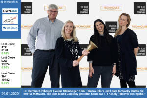 29.1.: Bernhard Raberger, Eveline Steinberger-Kern , Tamara Ehlers und Laura Innerasky läuten die Bell für Mittwoch. The Blue Minds Company gestaltet heute das 1. Friendly Takeover des #gabb http: www.boerse-social.com gabb http: www.www.blueminds-company.com www.build-and-invest.com www.tech-house.io 28.1.: Xenia Daum läutet die Opening Bell für Dienstag. Die Ex-Volleyballerin und Digitalexpertin holte Rang 2 beim Business Athlete Award. http: www.sportgeschichte.at baa http: www.sdo.at photaq.com page index 3767 27.1.: Stefan Rathausky läutet die Opening Bell für Montag. Der "Merger Manager" der RHI Magnesita und mehrfache Staatsmeister mit dem Säbel ist "Business Athlete des Jahres" , Bilder unter photaq.com page index 3767 ... » Weiterlesen