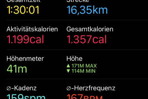 Der zweite 90 Min. Slowrun in diesem Jahr. Da will ich stets eine Pace nehmen, die um 1 Minute über der jüngsten 10er-Pace war. Beim 10er wars zuletzt 4:30, also 5:30 diesmal. Idee ist, dabei in Ruhe ein Hörbuch zu hören. Hab ich gemacht und bei "GRM - Brainfuck" von Sybille Berg weiterkonsumiert. Schon eine Arg Welt, in der wir leben. Die Autorin überzeichnet nur leicht. Bin in den 90 min. 16,35k weit gekommen. Aktivität: Lauf Dauer: 01:30:01 Distanz: 16 350 Pace: 05:30 km h: 10.91 Schuhe: Vibram App: Runplugged Uhr: Apple Watch Runkit rechnet: Christian ist im Januar bisher 144,409 km gelaufen, im Schnitt täglich 7,220 km, ein Plus von 0,00 Prozent gegenüber dem , als Christian 0,000 km Tagesschnitt hatte. Christians Top-Monat bish... » Weiterlesen