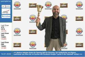 14.1.: Markus Sethaler läutet die Opening Bell für Dienstag. Der Hobbyläufer und Diplom Lauftrainer aus Wien hat vor kurzem die Facebook-Gruppe "Laufen in der Seestadt" initiiert http: www.sportgeschichte.at 13.1.: Stefan Marin läutet die Opening Bell für Montag. Die Frequentis-Aktie ist gut unterwegs, was es mit der Innovationsstrasse 1 auf sich hat, ist in der heutigen Ausgabe des #gabb zu lesen http: www.frequentis.com http: www.boerse-social.com gabb http: www.boerse-social.com plan atmap 10.1.: Alois Wögerbauer läutet die Opening Bell für Freitag. Der Geschäftsführer der 3Banken Generali KAG ist unser Sponsoring Partner bei der heutigen Ausgabe Nr. 500 des #gabb www.3bg.at bzw. zu Mittag dann http: www.boerse-social.... » Weiterlesen