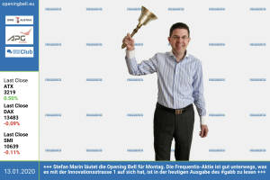 13.1.: Stefan Marin läutet die Opening Bell für Montag. Die Frequentis-Aktie ist gut unterwegs, was es mit der Innovationsstrasse 1 auf sich hat, ist in der heutigen Ausgabe des #gabb zu lesen http: www.frequentis.com http: www.boerse-social.com gabb http: www.boerse-social.com plan atmap 10.1.: Alois Wögerbauer läutet die Opening Bell für Freitag. Der Geschäftsführer der 3Banken Generali KAG ist unser Sponsoring Partner bei der heutigen Ausgabe Nr. 500 des #gabb www.3bg.at bzw. zu Mittag dann http: www.boerse-social.com gabb 9.1.: Connie Herrmann läutet die Opening Bell für Donnerstag im Rahmen der Own Austria Invitation auf der Alten Donau. Die Allroundsportlerin freut sich auf ein aktives Jahr 2020 8.1.: Andreas Klauser... » Weiterlesen