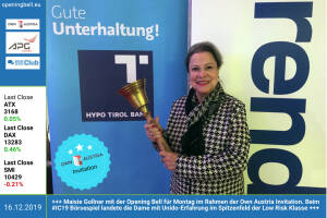 16.12.: Maisie Gollner läutet die Opening Bell für Montag im Rahmen der Own Austria Invitation. Beim #IC19 Börsespiel landete die Dame mit Unido-Erfahrung im Spitzenfeld der Low Risk Klasse 13.12.: Ernst Huber läutet die Opening Bell für Freitag. In unserem "Podcast für junge Anleger jeden Alters" ist ein Megatrends-Interview mit dem Brokerage-Pionier live gegangen. U.a. auf Spotify http: www.boerse-social.com podcasts http: www.dad.at 12.12.: Christine Reitsamer läutet die Opening Bell für Donnerstag. Die Ex-Baader-Analystin wechselte zur KPMG und ist im nächsten Börse Social Magazine mit einem spannenden IR-Statement vertreten http: www.boerse-social.com magazine 11.12.: Christoph Boschan läutet die Opening Bell fü... » Weiterlesen