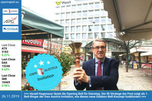 Harald Hagenauer läutet die Opening Bell für Dienstag und eröffnet die Own Austria...