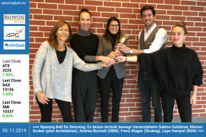 5.11.: Opening Bell für Dienstag: Es läuten technik bewegt-Veranstalterin Sabine Gstöttner, Marion Gruber (plov Architekten), Andrea Rochelt (UBM), Franz Klager (Strabag), Leya Hempel (BSN) http: www.bink.at technik-bewegt 4.11.: Remember Halloween 2019: Das war die Lugner-Ladies-Opening-Bell für eine Rocky Horror Picture Show Variante im Porgy & Bess in Wien, die mit extrem lässigem Cast glänzte http: www.porgy.at 31.10.: Rupert Brix läutet die Opening Bell für Donnerstag. Er ist der wohl meistbeschäftigte Notar betreffend börsenotierte AGs in Wien, die Schätzung ist, dass er rund 3 4 aller HVs leitet www.wien1-notare.at 30.10.: Nadine Kristin läutet die Opening Bell für Mittwoch. Neben ihrer Market... » Weiterlesen