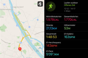 Das war heute die 1. Halbmarathon-Distanz in eineinhalb Jahren und ich merke, dass ich das lange nicht getan habe. Ich widme diesen Lauf der börsenotierten Warimpex und hab beim Headquarter kurz abgeklopft. Pace 5:09 passt schon für den ersten Try in eineinhalb Jahren, auf der Donauinsel war es dann doch recht windig und ein paar Mückenschwärme "standen" in der Luft. Aber sehr zufrieden, auch wenn die Wadln sich auch morgen melden werden. Aktivität: Lauf Dauer: 01:48:53 Distanz: 21 130 Pace: 05:09 km h: 11.65 Schuhe: Asics App: Runplugged Uhr: Apple Watch Runkit rechnet: Christian ist im September bisher 41,130 km gelaufen, im Schnitt täglich 3,427 km, ein Minus von 5,28 Prozent gegenüber dem August, als Christian 3,618 km Tagesschnitt ha... » Weiterlesen