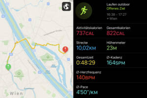 Bin am 9. Tag im Juli den 9. Zehner gelaufen (#9inarow), heute eine Besorgung im Donauzentrum gehabt. Und da hat sich das gut eintakten lassen. Pace war heute 4:50. Aktivität: Lauf Dauer: 00:48:29 Distanz: 10 020 Pace: 04:50 km h: 12.41 Schuhe: Asics App: Runplugged Uhr: Apple Watch Runkit rechnet: Christian ist im Juli bisher 90,160 km gelaufen, im Schnitt täglich 10,17 km, ein Plus von 257,39 Prozent gegenüber dem Juni, als Christian 2,803 km Tagesschnitt hatte. Christians Top-Monat bisher: Juli 2017 mit 10,433 km täglich. >> Zum Runkit Profil von Christian Drastil Weitere Einträge bzw. selbst gratis anmelden, Aktivitäten verwalten und bloggen! » Weiterlesen
