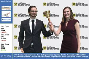 Thomas Pusterhofer und Vera Buttinger läuten die Opening Bell für Donnerstag