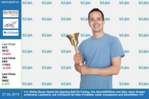 7.6.: Stefan Bauer läutet die Opening Bell für Freitag. Der Geschäftführer von blün, einer Gruppe erfahrener Landwirte, hat 3 Kriterien für blün-Produkte: lokal, transparent und ökoeffektiv bluen.at www.facebook.com groups GeldanlageNetwork 6.6.: Anna Veith läutet die Opening Bell für Donnerstag und die geplante Fortsetzung ihrer Karriere im Skizirkus. Sie gewann bereits Olympia- und WM-Gold bzw. den Gesamtweltcup http: www.anna-veith.com 5.6.: Jennifer Gerstl , Cornelia Harlacher und Bernadette Höritzauer läuten die Opening Bell für Mittwoch. Das Drei-Frauen-Power-Team leitet Communications & Marketing bei der Porr http: www.porr-group.com www.facebook.com groups GeldanlageNetwork 4.6..: Andreas Klau... » Weiterlesen