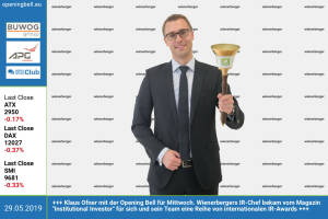 Klaus Ofner läutet die Opening Bell für Mittwoch