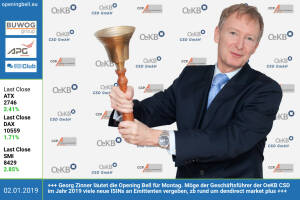 2.1.: Georg Zinner läutet die Opening Bell für Mittwoch. Möge der Geschäftsführer der OeKB CSD im Jahr 2019 viele neue ISINs an Emittenten vergeben, zb rund um den neuen direct market plus. Im Magazine #23 (seit heute unter boerse-social.com pdf magazines bsm_23 als Digital Paper live) ist Zinner im Interview zum global market http: www.oekb.a t www.facebook.com groups GeldanlageNetwork 28.12.: Karl Brauneis läutet die Opening Bell für Freitag, den letzten Handelstag 2018. Als Head of Market Operations & Surveillance der Wiener Börse erinnert er daran, dass die Schlussauktion bei Aktien heute schon um 14:15 Uhr startet. Die Wiener Börse wünscht einen guten Rutsch! http: www.wienerborse.at www.facebook.com groups GeldanlageNetwork 2... » Weiterlesen