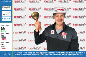 19.12.: Manuel Feller läutete die Opening Bell für Mittwoch. Der ÖSV-Star schaffte sich danach im 1. DG des RTL von Saalbach (Saalbach ziert auch Fellers Kappl) ein feine Ausgangsposition http: www.oesv.at www.facebook.com search top ?q=sportsblogged http: www.runplugged.com 18.12.: Lukas Reiter läutet die Opening Bell für Dienstag. Der Account Manager bei der EQS Group AG kommuniziert laufend mit der österreichischen Investor Relations-Szene. www.eqs.com de de www.facebook.com groups GeldanlageNetwork 17.12.: Thomas Steinberger läutet die Opening Bell für Montag. Der CIO von Spängler IQAM Invest rät Anlegern, in 2019 auf europäische Aktien und Emerging Markets-Anleihen zu setzen. http: www.iqam.com www.facebook.com groups Geld... » Weiterlesen