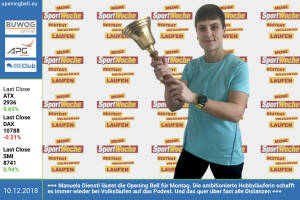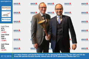 7.12.: Heinz Bednar und Gerold Permoser mit der Opening Bell für Freitag. Der CEO und CIO der Erste Asset Mangement nannten bei einem Pressegespräch kürzlich Gründe, warum man für 2019 optimistisch bleiben darf. http: erste-am.at www.facebook.com groups GeldanlageNetwork 6.12.: Ross Dawson läutet die Opening Bell für Donnerstag. Er hält heute die Keynote auf der Cyber Security und Cloud Computing Conference, welche von Fabasoft initiiert und gehostet wird. www.fabasoft.com de news events cybersecurity-und-cloud-computing-so-erreicht-europa-den-ultimativen-wettbewerbsvorteil www.facebook.com groups GeldanlageNetwork 5.12.: Philipp von Breitenbach läutet die Opening Bell für Mittwoch. Ab sofort bietet xtb die Single-Brokerage Handelsplat... » Weiterlesen